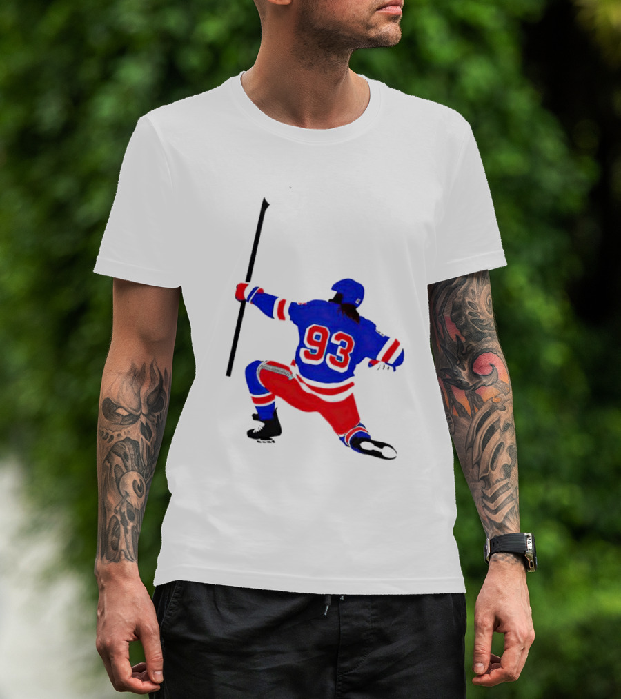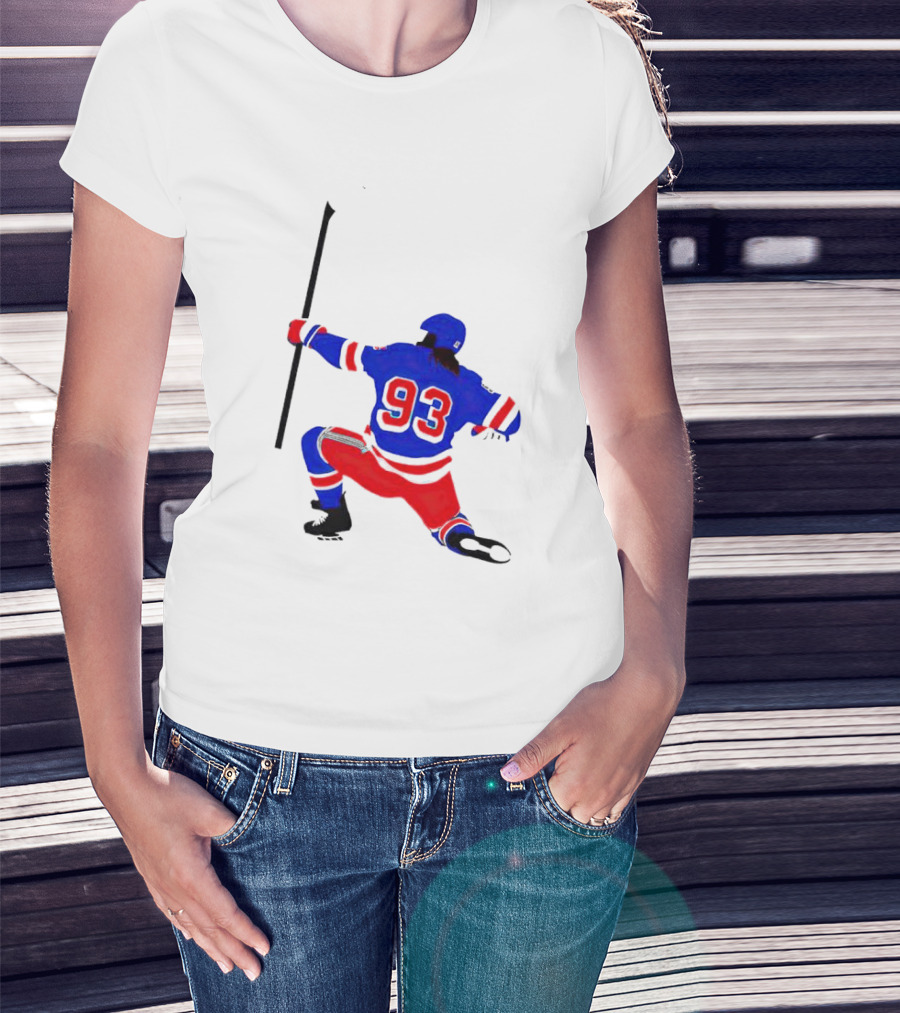Mika Zibanejad Number 93 Hockey Celebration Iconic Bowing Pose T-Shirt