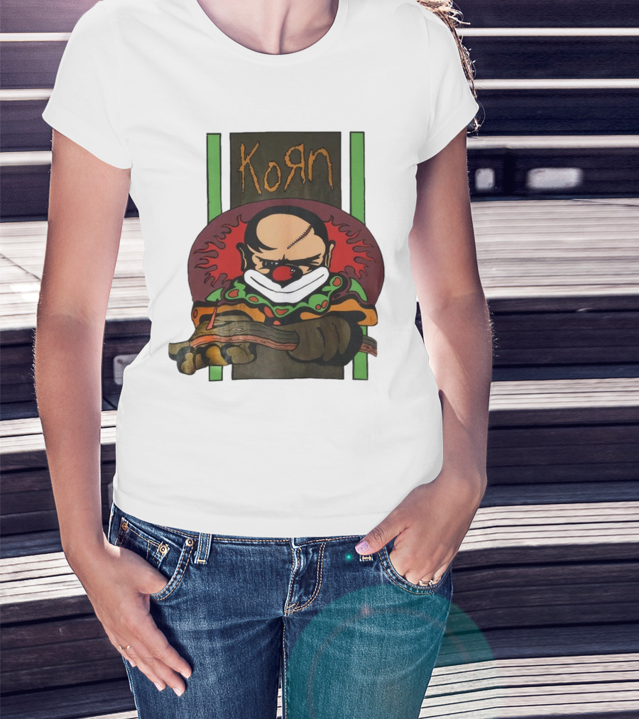 Korn Clown Vintage Evil Clown With Red Nose And Stitched Head T-Shirt