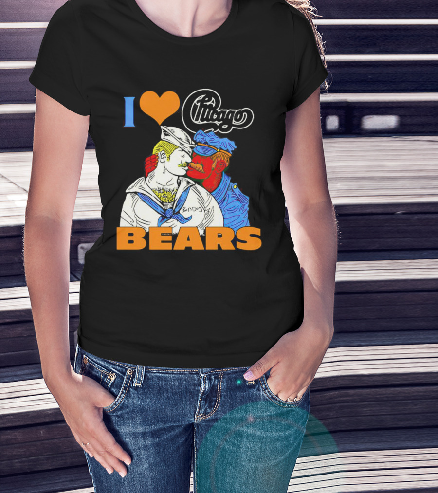 I Love Chicago Bears BossDog Sailor And Cop Embrace T-Shirt