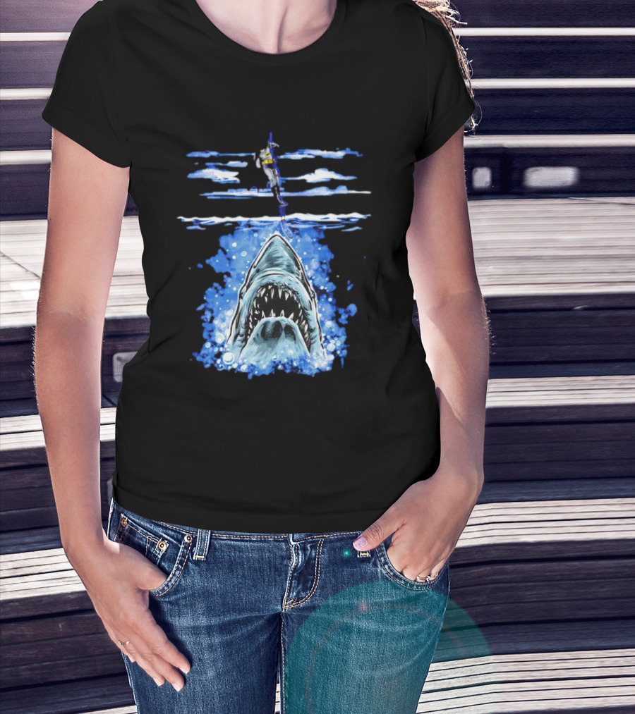 Jaws Batman Shark Repellent Hanging Above Menacing Shark T-Shirt