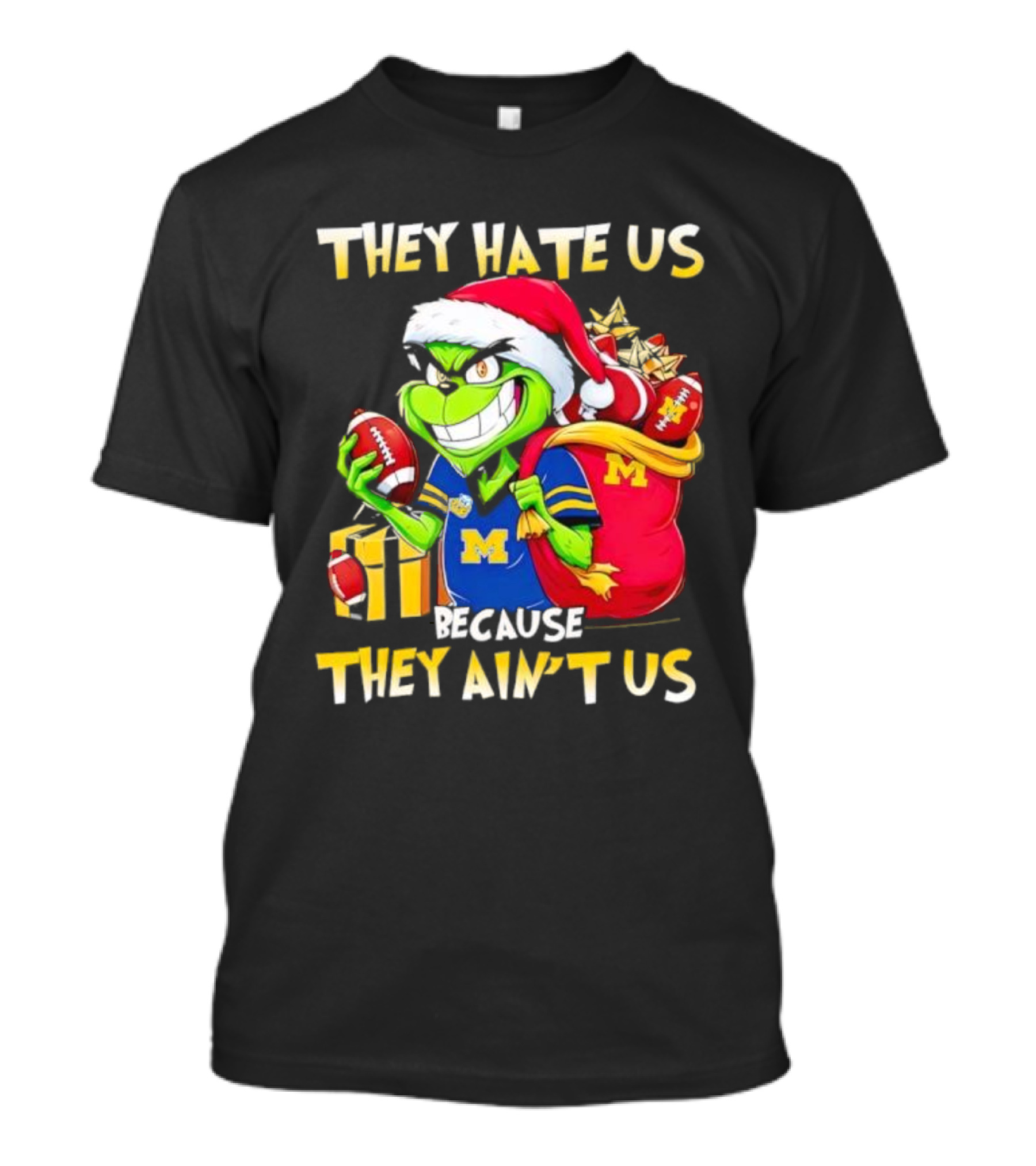 Michigan Wolverines Grinch Santa They Hate Us Because They Ain't Us Football Holiday T-Shirt