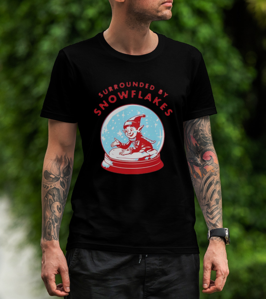 Surrounded By Snowflakes Elf Inside Snow Globe Winter Scene T-Shirt
