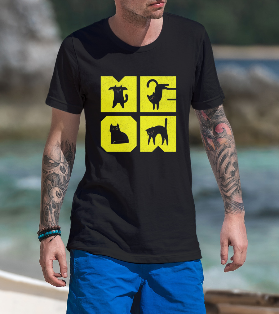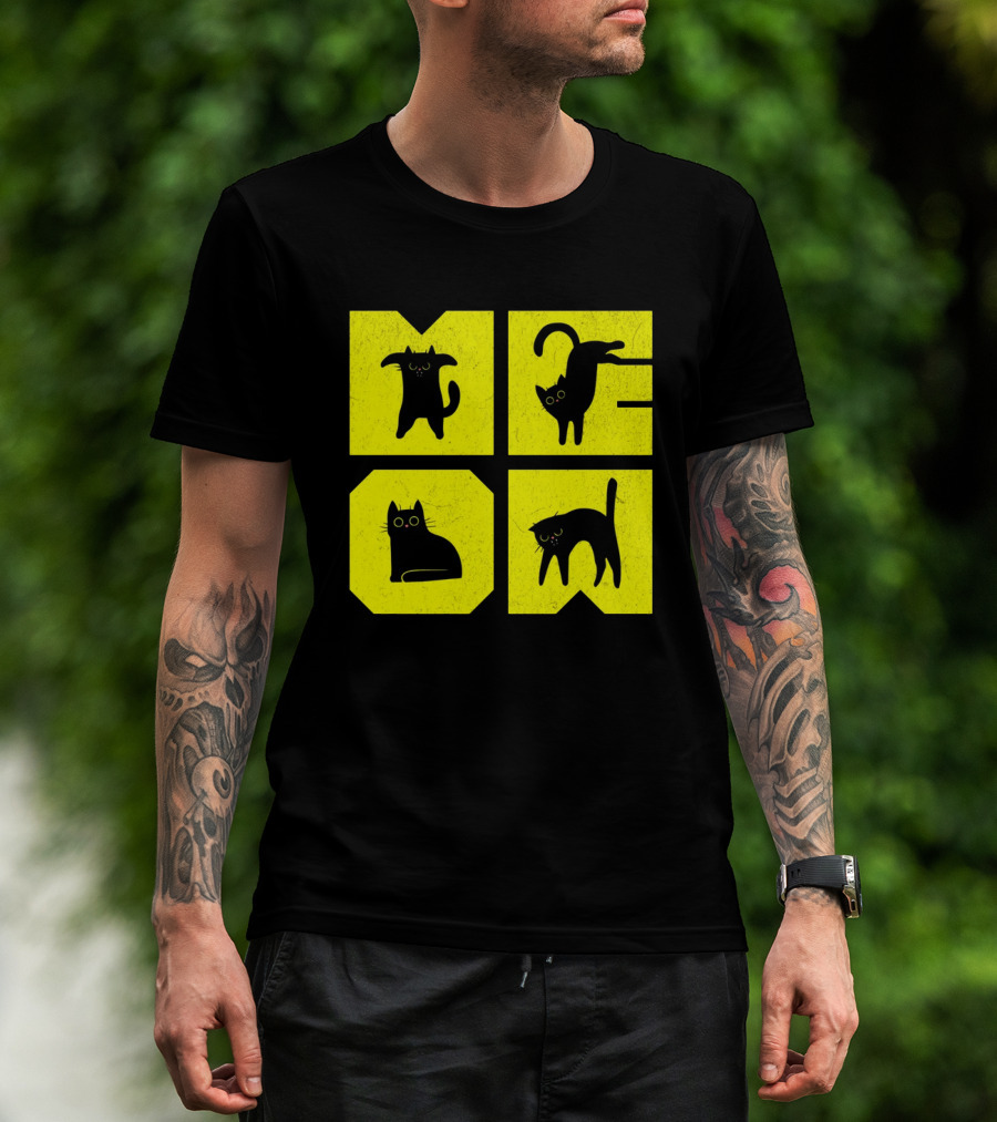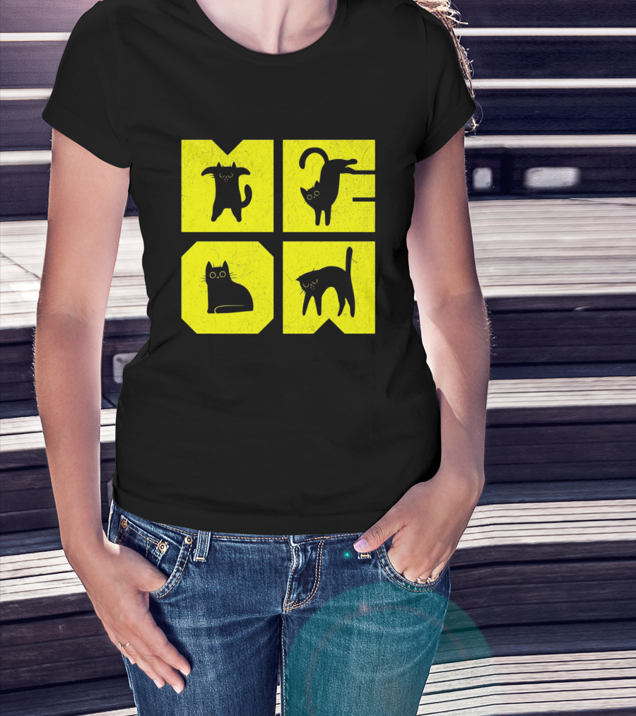 MEOW Cute Black Cats On Yellow Blocks T-Shirt