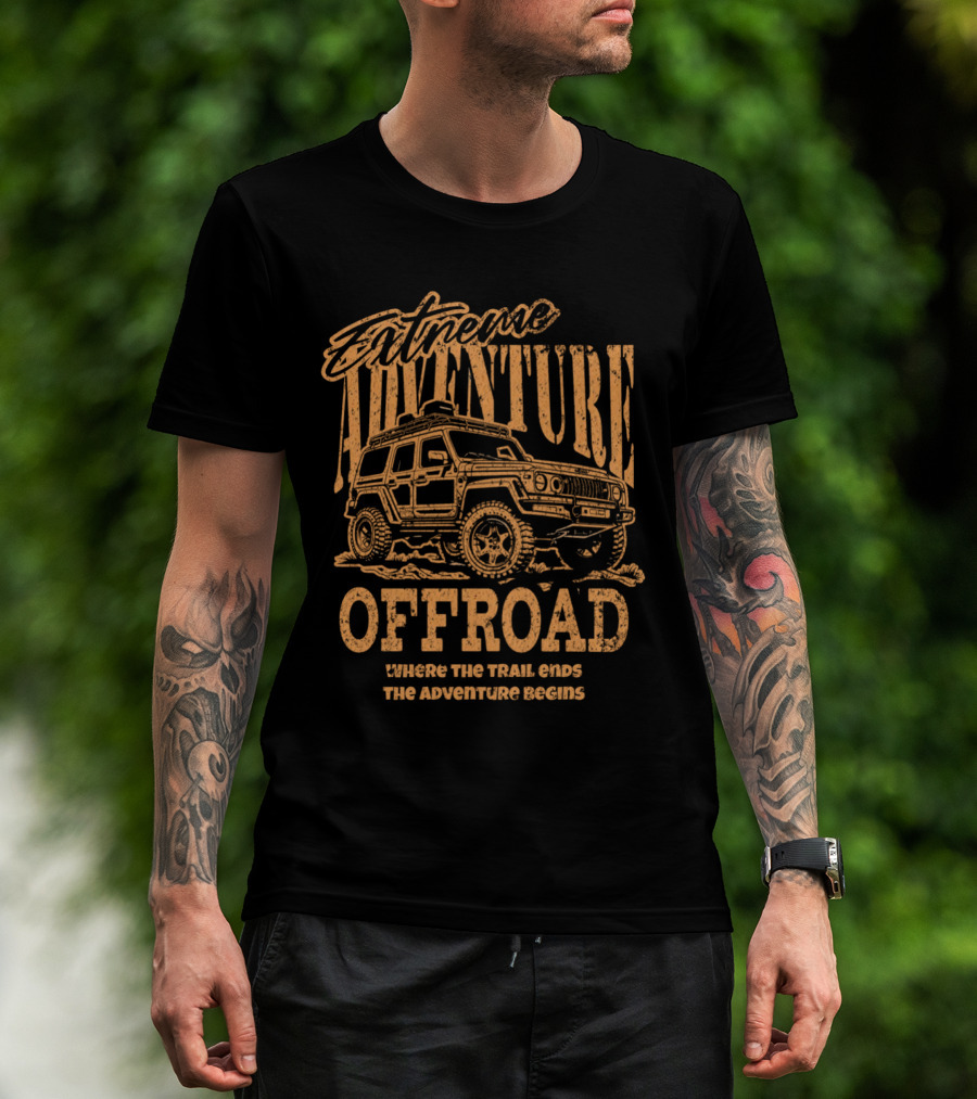 The Extreme Adventure Offroad Where the Trail Ends the Adventure Begins T-shirt is designed for everyday wear and a consistent fit. Fabric is pre-shrunk ring-spun cotton with durable stitching. See the size chart below for exact measurements.