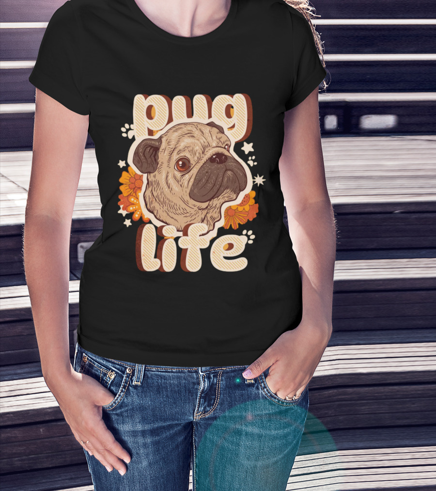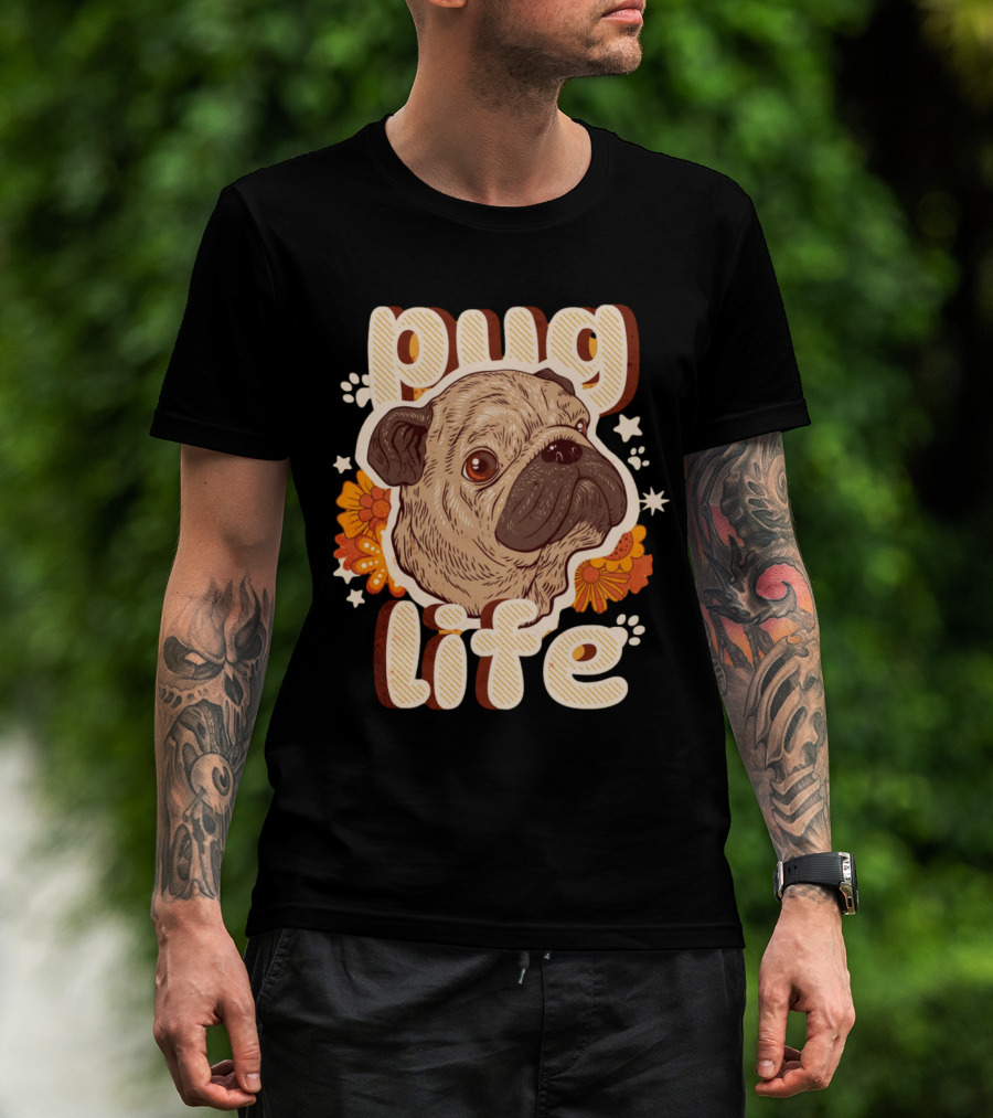 The Pug Life Retro Floral T-shirt is designed for everyday wear and a consistent fit. Fabric is pre-shrunk ring-spun cotton with durable stitching. See the size chart below for exact measurements.