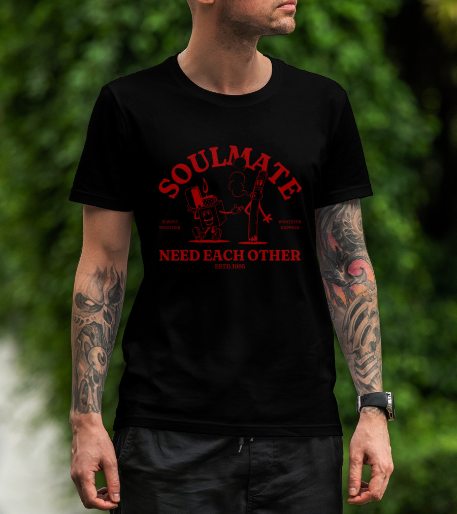 The Soulmate Always Together Need Each Other Estd.1995 Whatever Happens T-shirt is designed for everyday wear and a consistent fit. Fabric is pre-shrunk ring-spun cotton with durable stitching. See the size chart below for exact measurements.