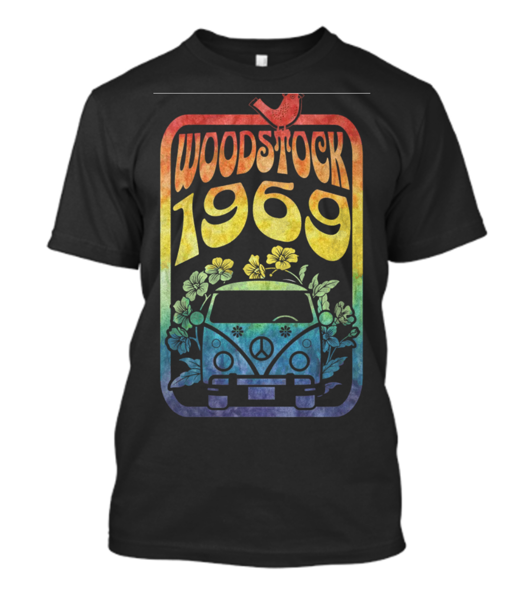 Woodstock 1969 Colorful Campervan Peace Symbol With Flowers T-Shirt