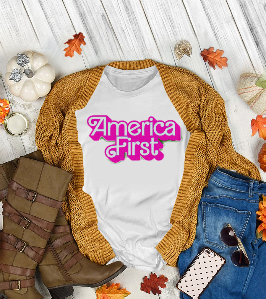 The America First Barbie Style Pink Font T-shirt is designed for everyday wear and a consistent fit. Fabric is pre-shrunk ring-spun cotton with durable stitching. See the size chart below for exact measurements.