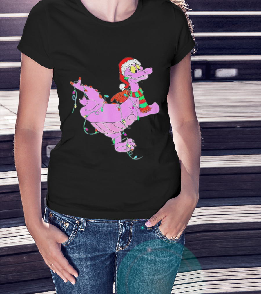 How much will this Dragon Figment in Santa Hat Wrapped in Christmas Lights shirt shrink?