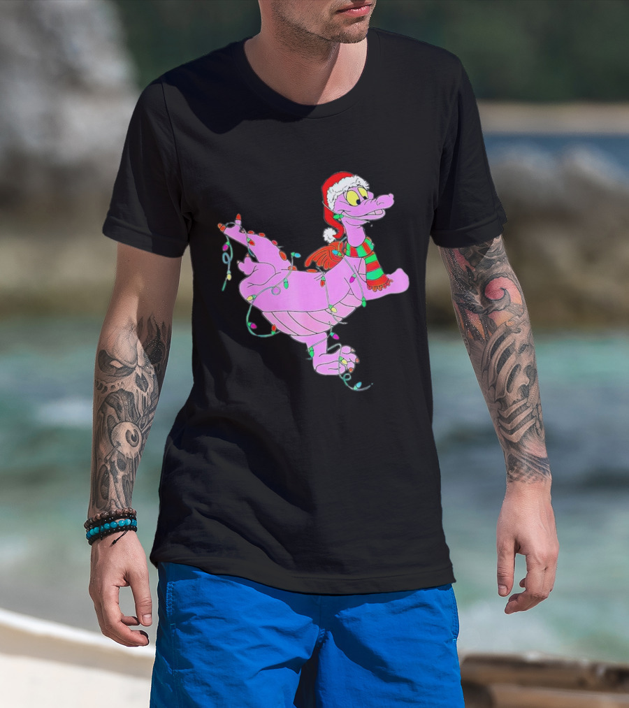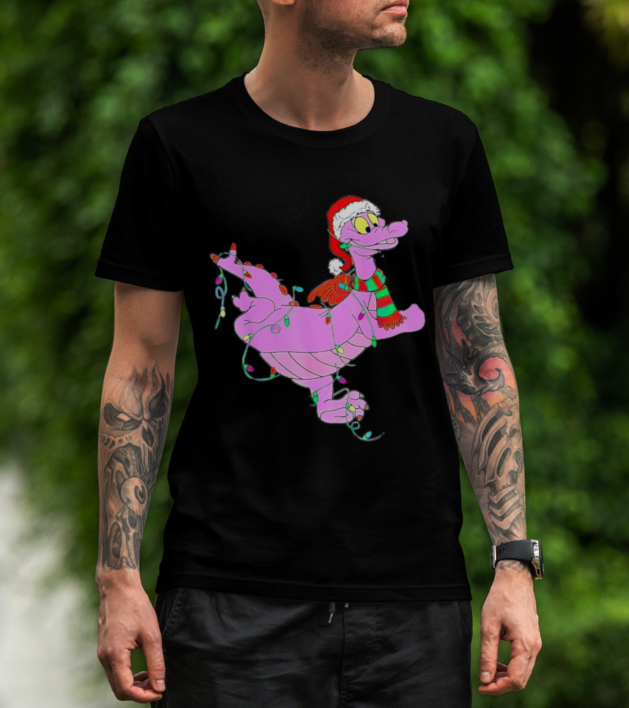 Dragon Figment In Santa Hat Wrapped In Christmas Lights T-Shirt