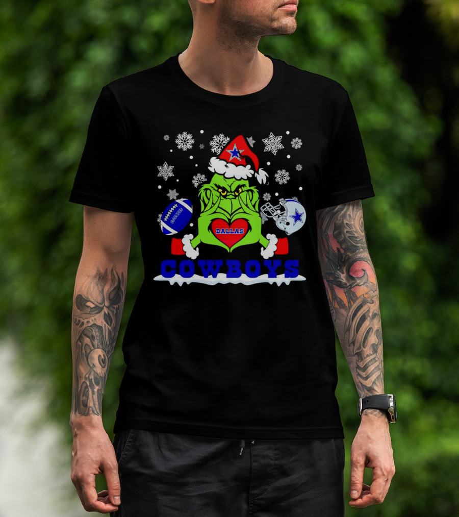 Grinch Dallas Cowboys Christmas Football Snowflakes T-Shirt
