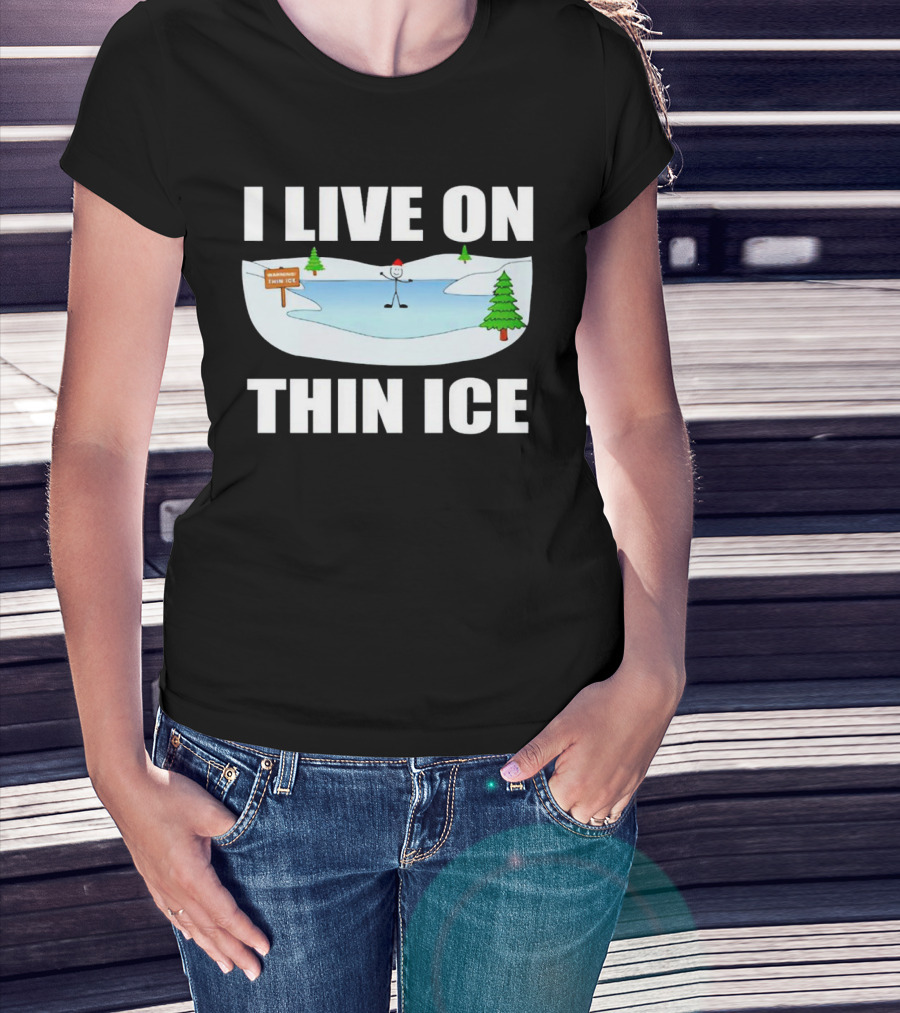 I Live On Thin Ice Stick Figure Skating On Frozen Lake T-Shirt