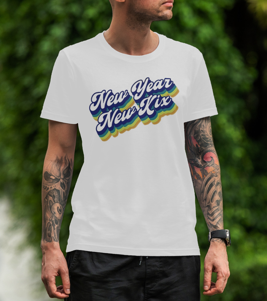 The New Year New Kix Retro Colorful Script T-shirt is designed for everyday wear and a consistent fit. Fabric is pre-shrunk ring-spun cotton with durable stitching. See the size chart below for exact measurements.