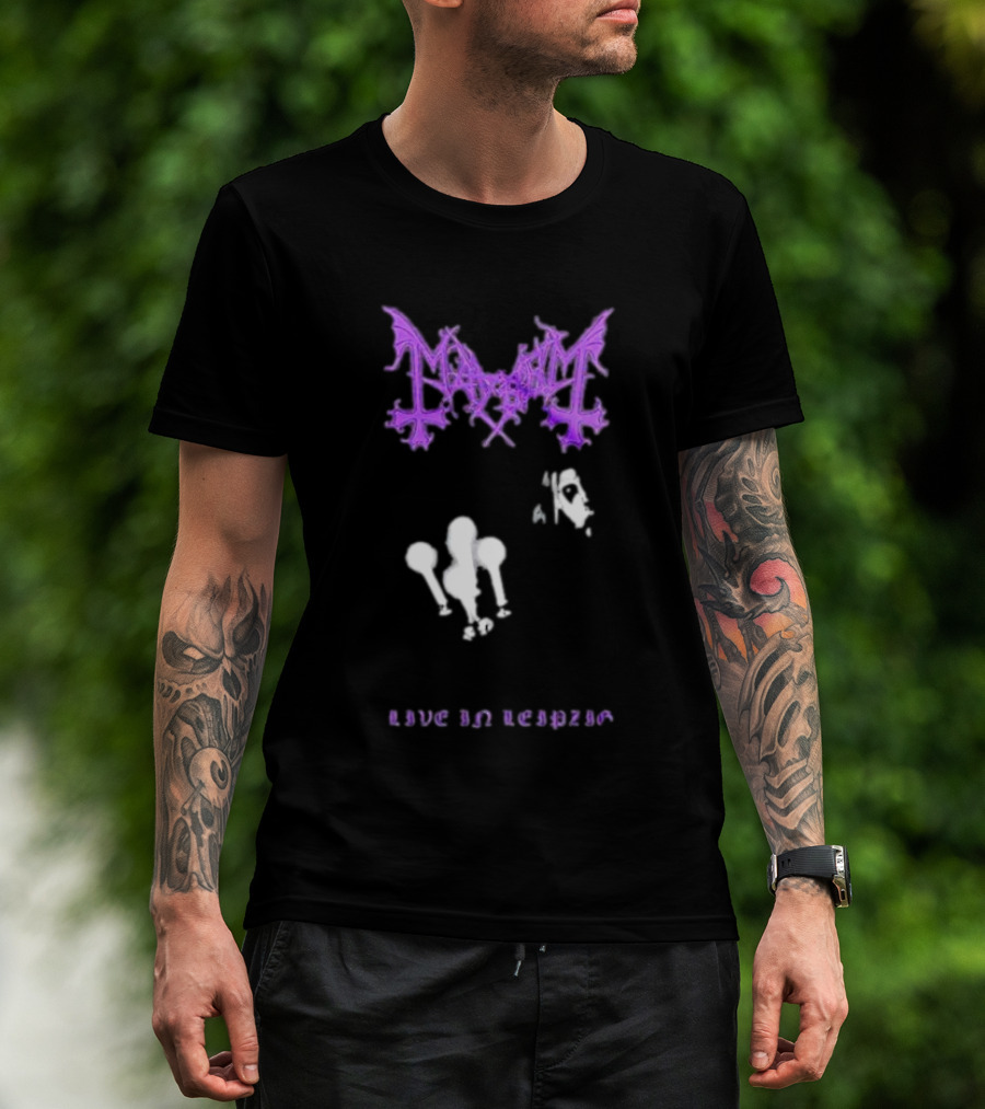 Mayhem Live In Leipzig Gothic Logo And Abstract Figure T-Shirt