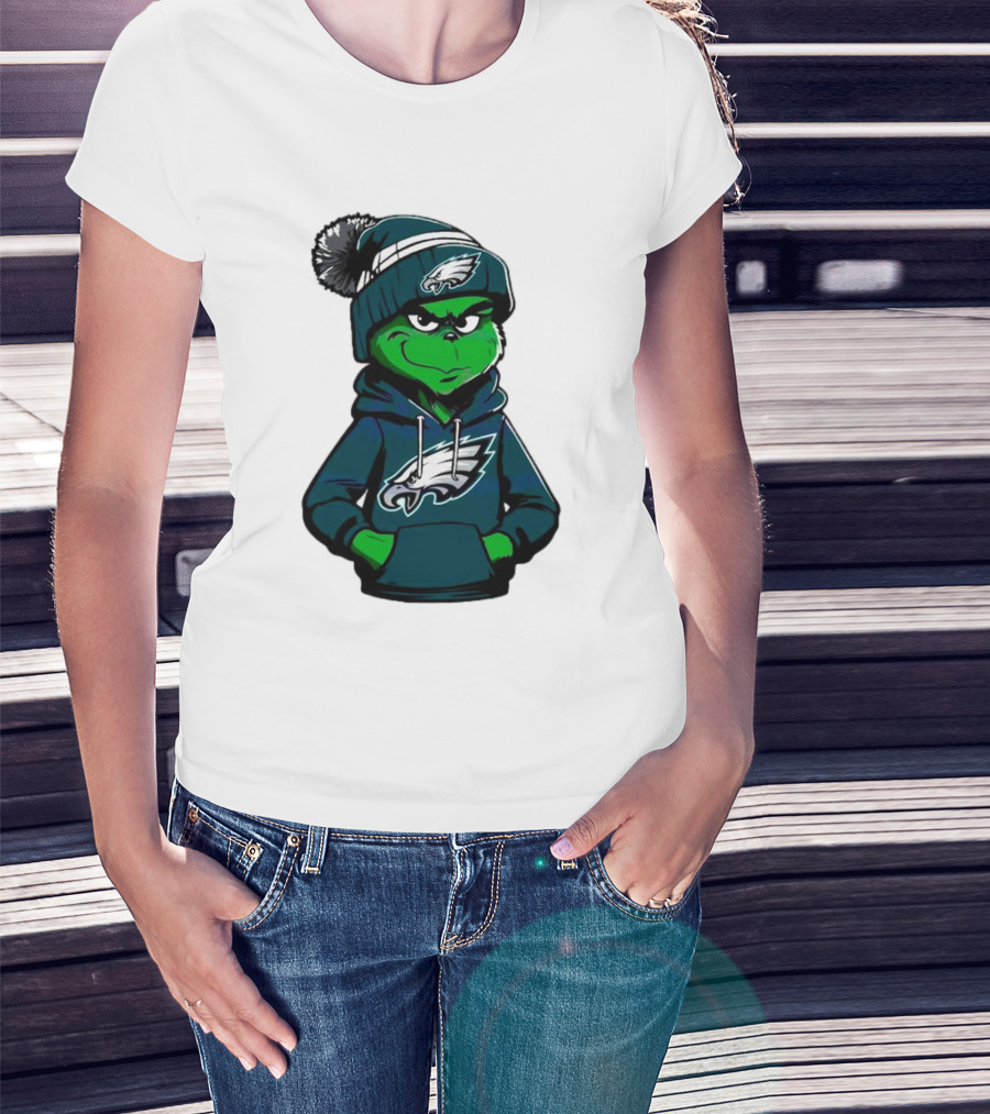 Grinch Dressed In Philadelphia Eagles Hoodie And Hat T-Shirt