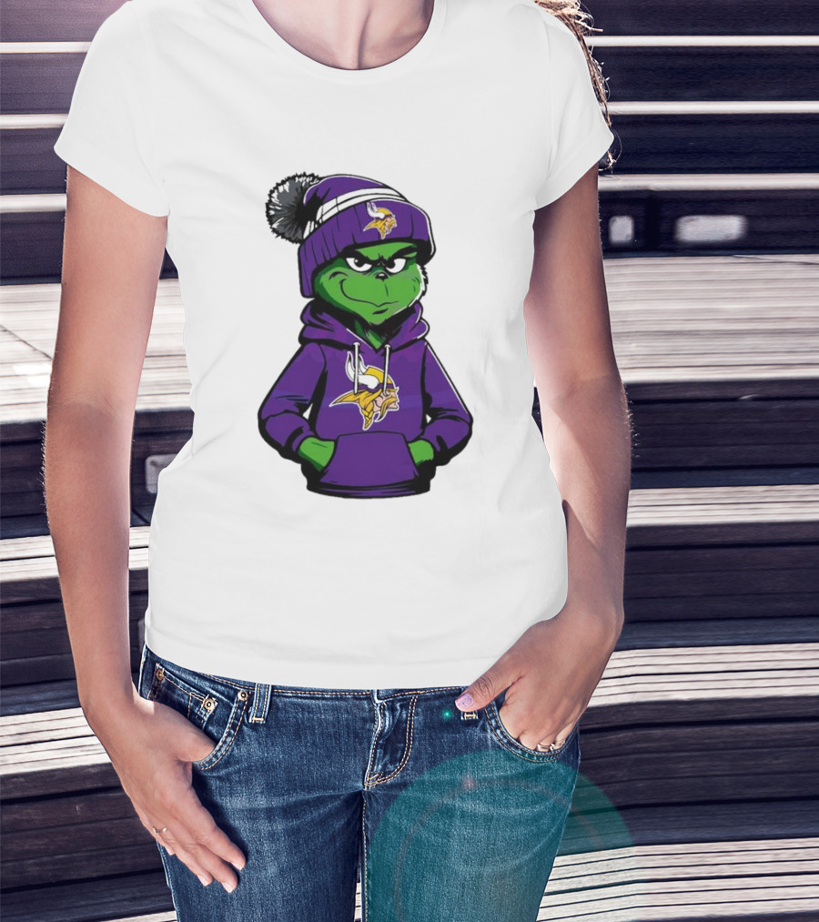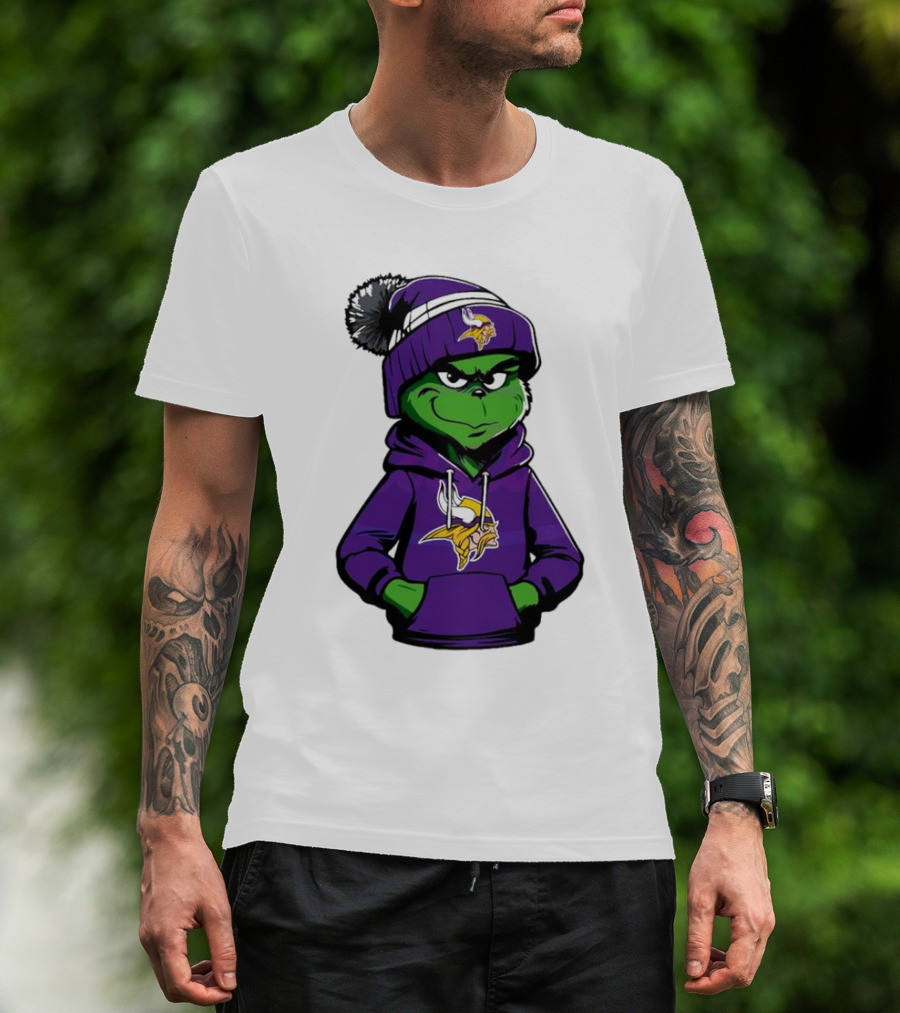 Grinch In Minnesota Vikings Hoodie And Hat With Team T-Shirt
