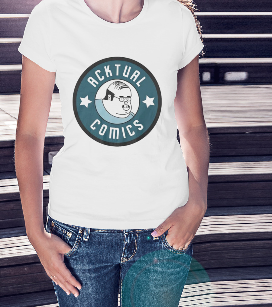 The Acktual Comics Star Emblem T-shirt is designed for everyday wear and a consistent fit. Fabric is pre-shrunk ring-spun cotton with durable stitching. See the size chart below for exact measurements.