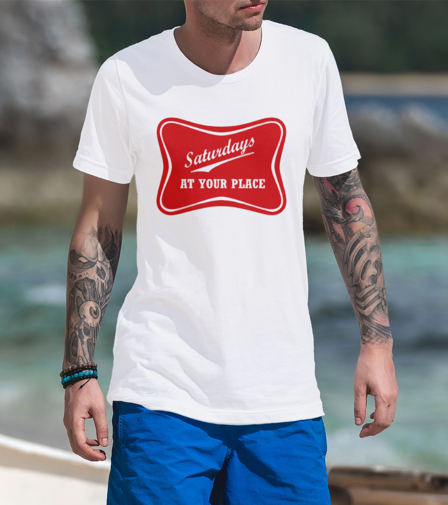 The Saturdays at Your Place Red Label T-shirt is designed for everyday wear and a consistent fit. Fabric is pre-shrunk ring-spun cotton with durable stitching. See the size chart below for exact measurements.