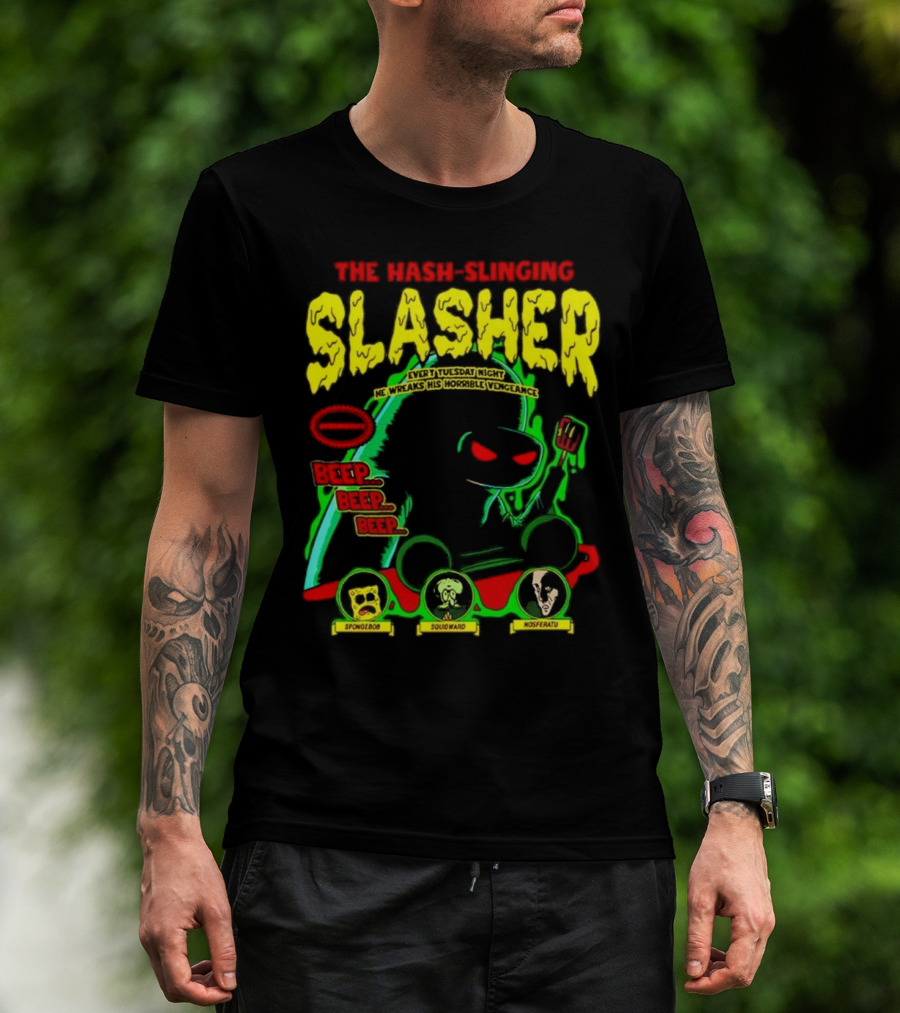 The Hash-Slinging Slasher Every Tuesday Night Beep Beep Featuring Spongebob Squidward Nosferatu T-Shirt