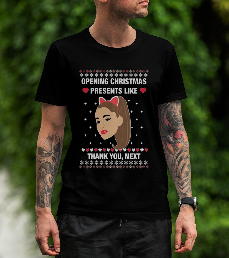Opening Christmas Presents Like Thank You Next Ariana Grande Cat Ears T-Shirt