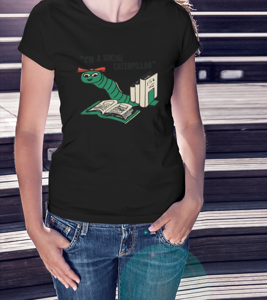 Sthatgohard I'm A Social Caterpillar Cartoon Worm Books T-Shirt