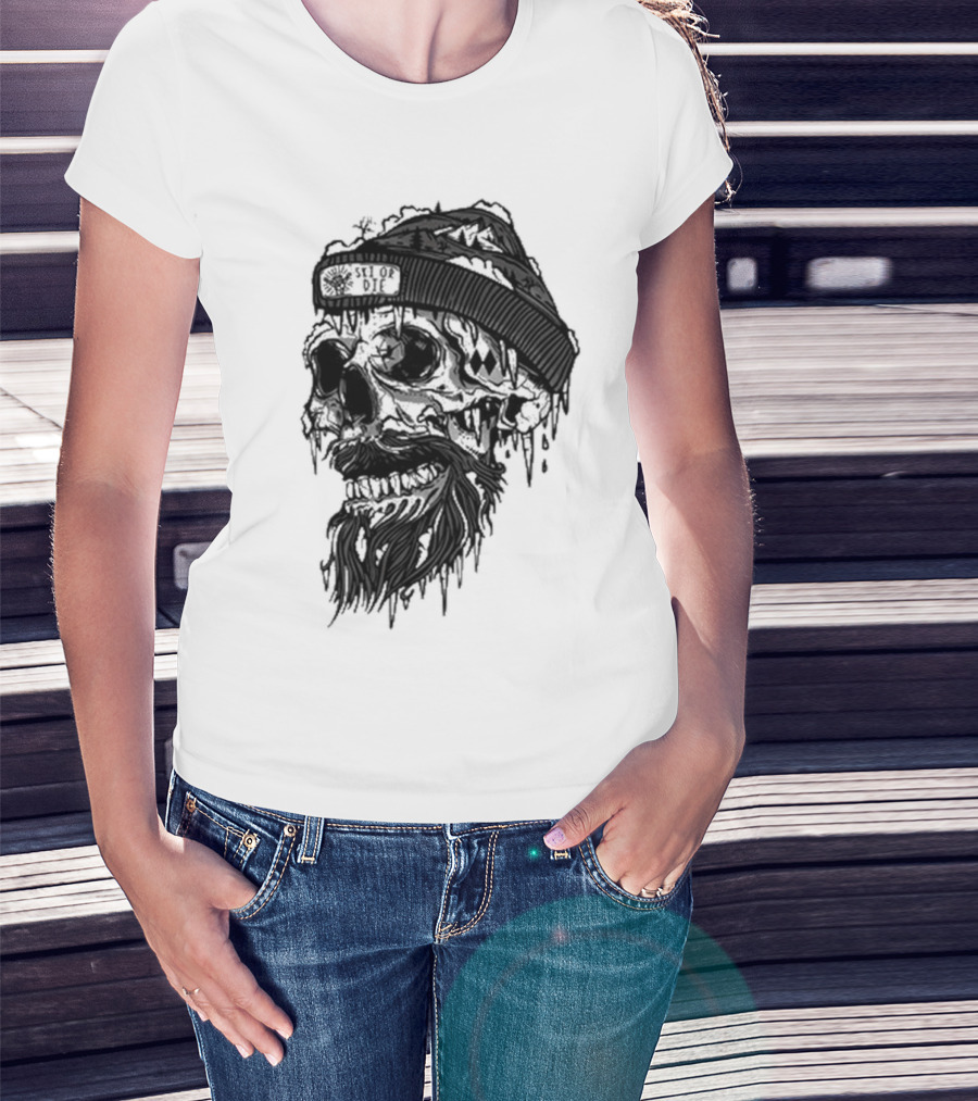 Skull Wild Ski Or Die Ice Beard Beanie Adventure T-Shirt