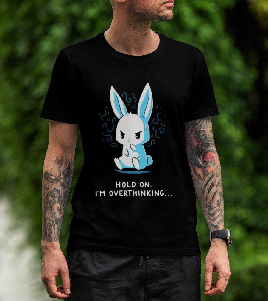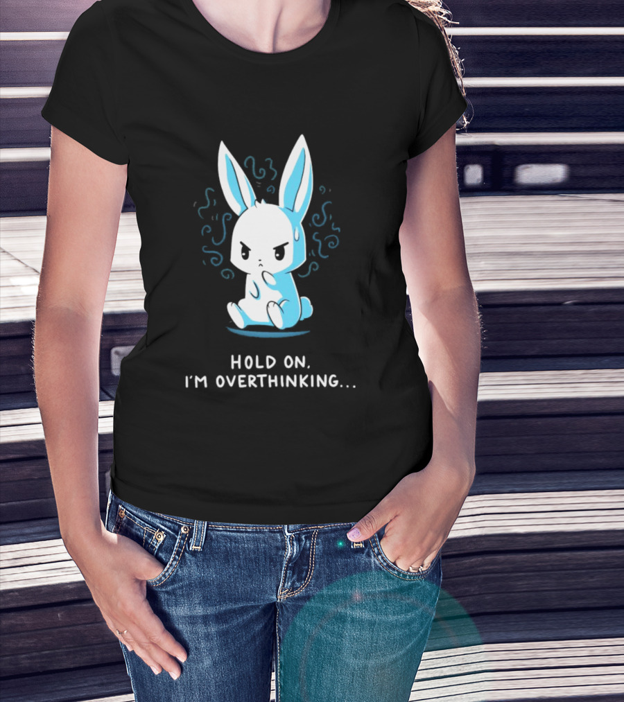 Hold On I'm Overthinking Blue Rabbit T-Shirt