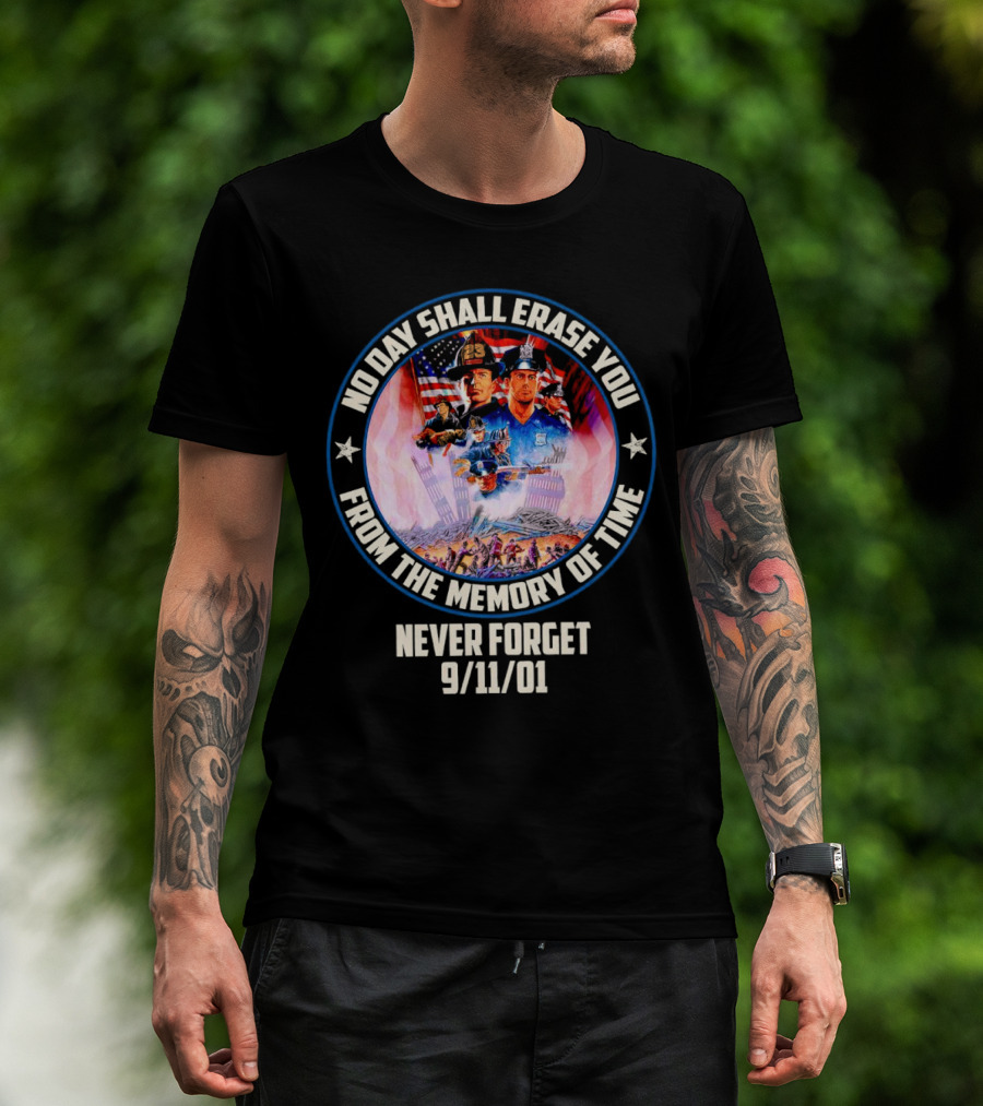 No Day Shall Erase You From The Memory Of Time Never Forget 9/11/01 American Heroes T-Shirt