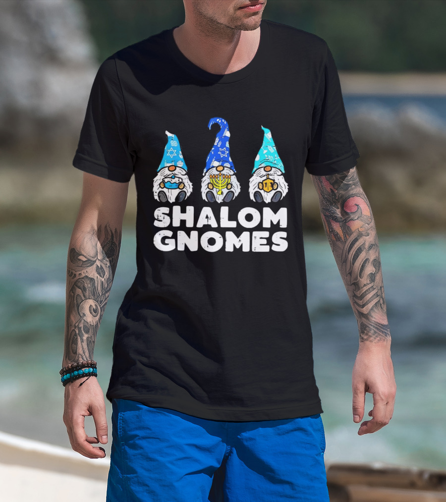 Shalom Gnomes Hanukkah Menorah Star Of David T-Shirt