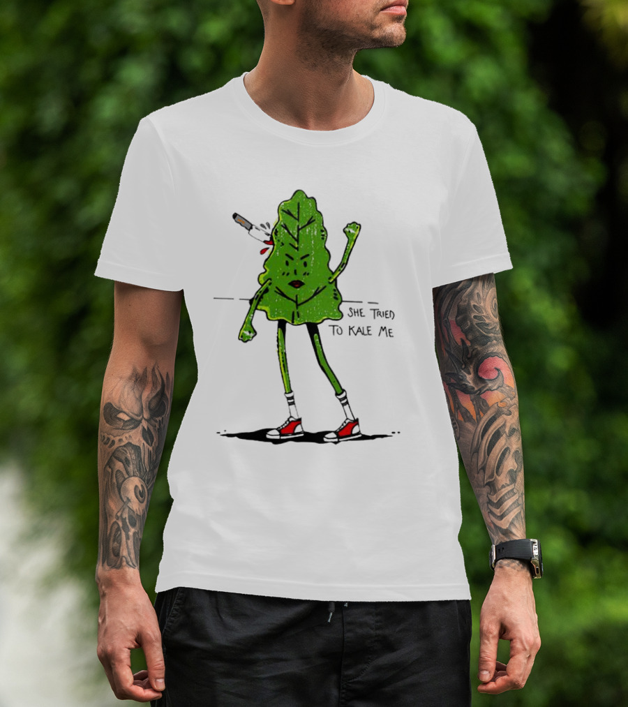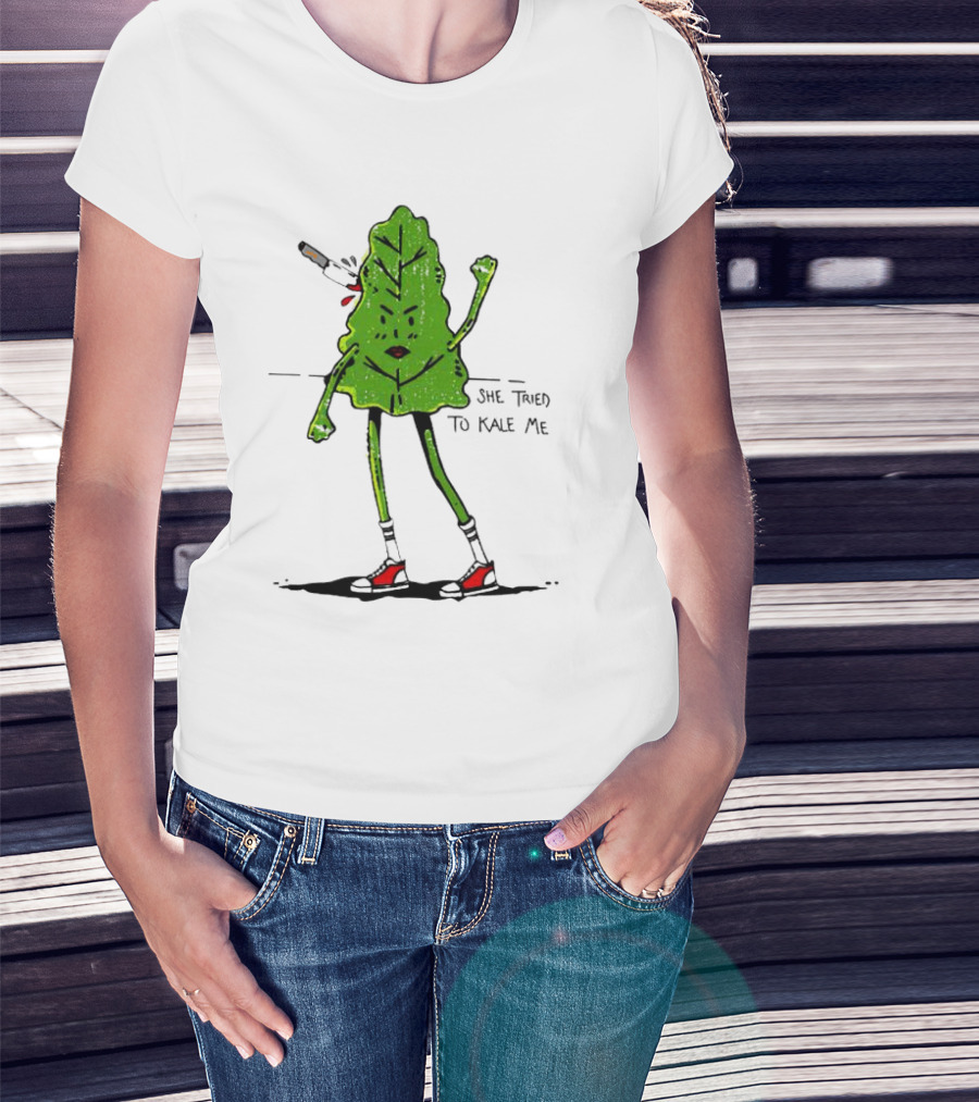 She Tried To Kale Me Smoking Kale Leaf Cartoon In Red Heels T-Shirt