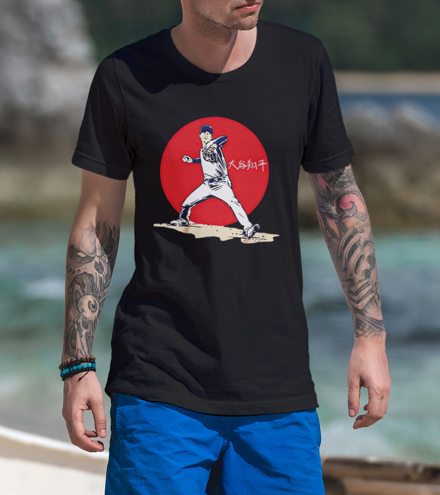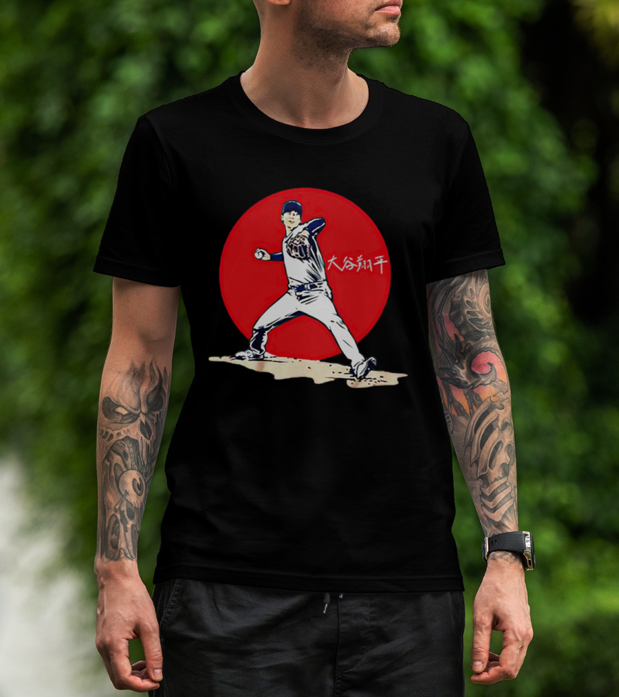 Shohei Ohtani Japanese Baseball Pitcher Icon Red Circle Kanji T-Shirt