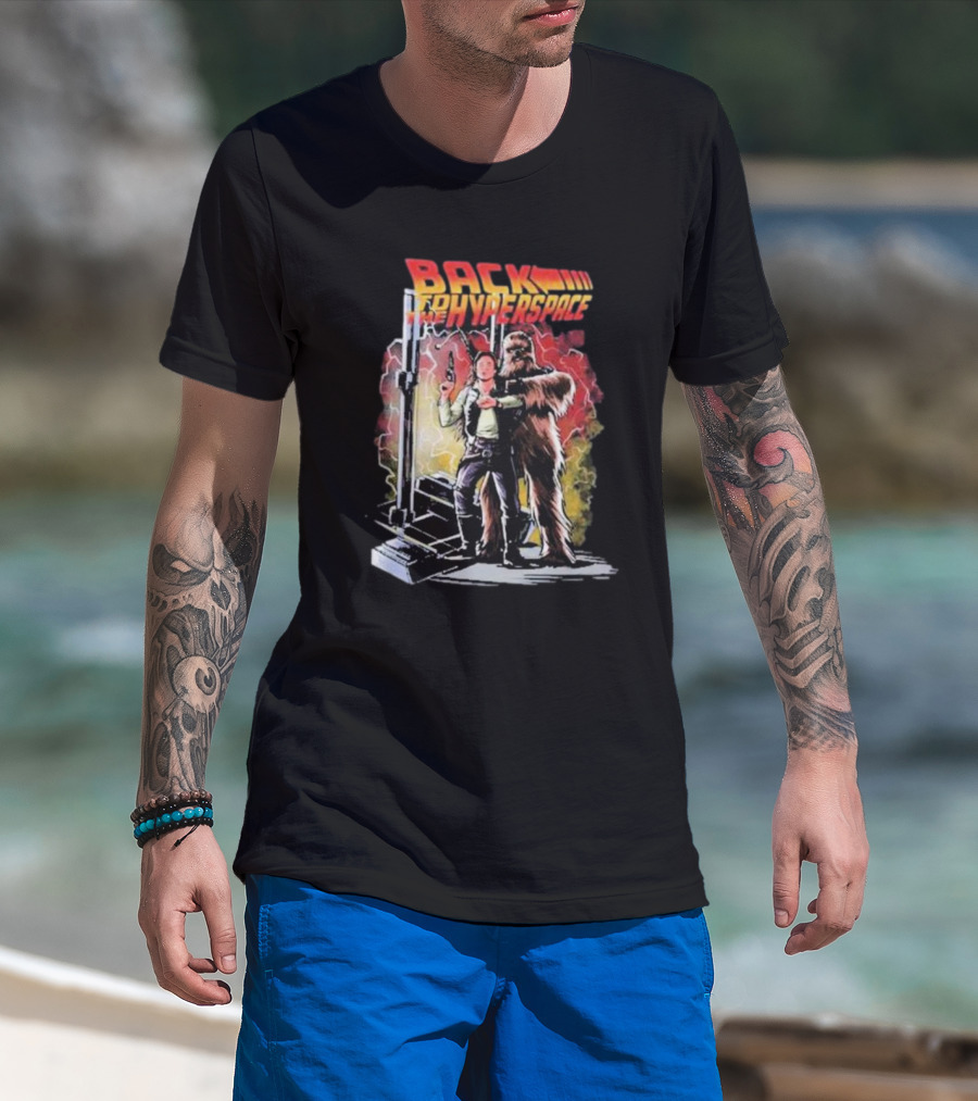 BACK TO THE HYPERSPACE Han Solo Chewbacca Crossover Retro Sci-Fi Adventure T-Shirt