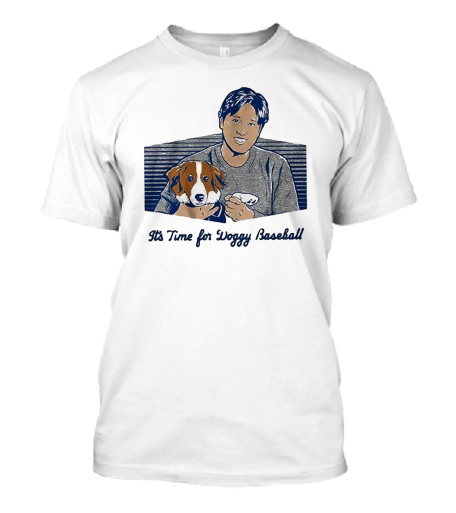The Shohei Ohtani It's Time for Doggy Baseball Quality Charm T-shirt is designed for everyday wear and a consistent fit. Fabric is pre-shrunk ring-spun cotton with durable stitching. See the size chart below for exact measurements.