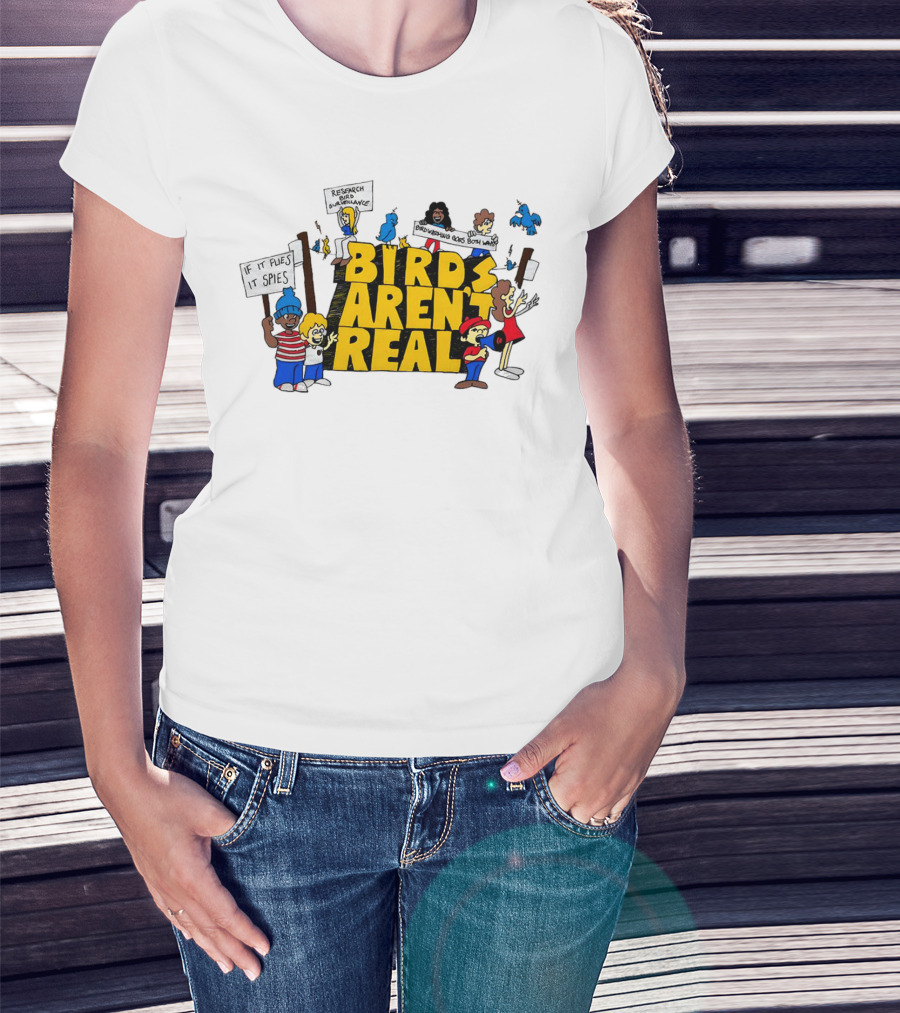 Birds Aren't Real If It Flies It Spies Protest Characters T-Shirt