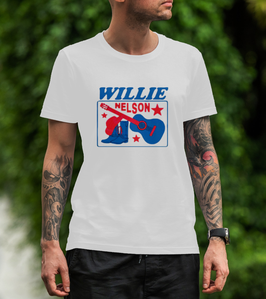 WILLIE NELSON Guitar Cowboy Boots Hat Stars T-Shirt
