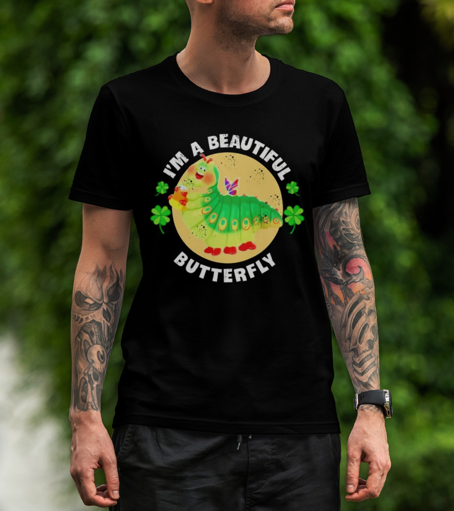 I’m A Beautiful Butterfly Green Caterpillar With Shamrocks T-Shirt