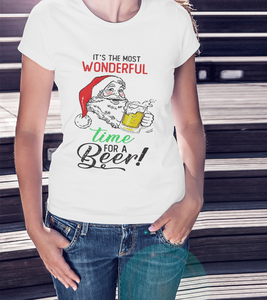 It's The Most Wonderful Time For A Beer Santa Drinking Xmas T-Shirt