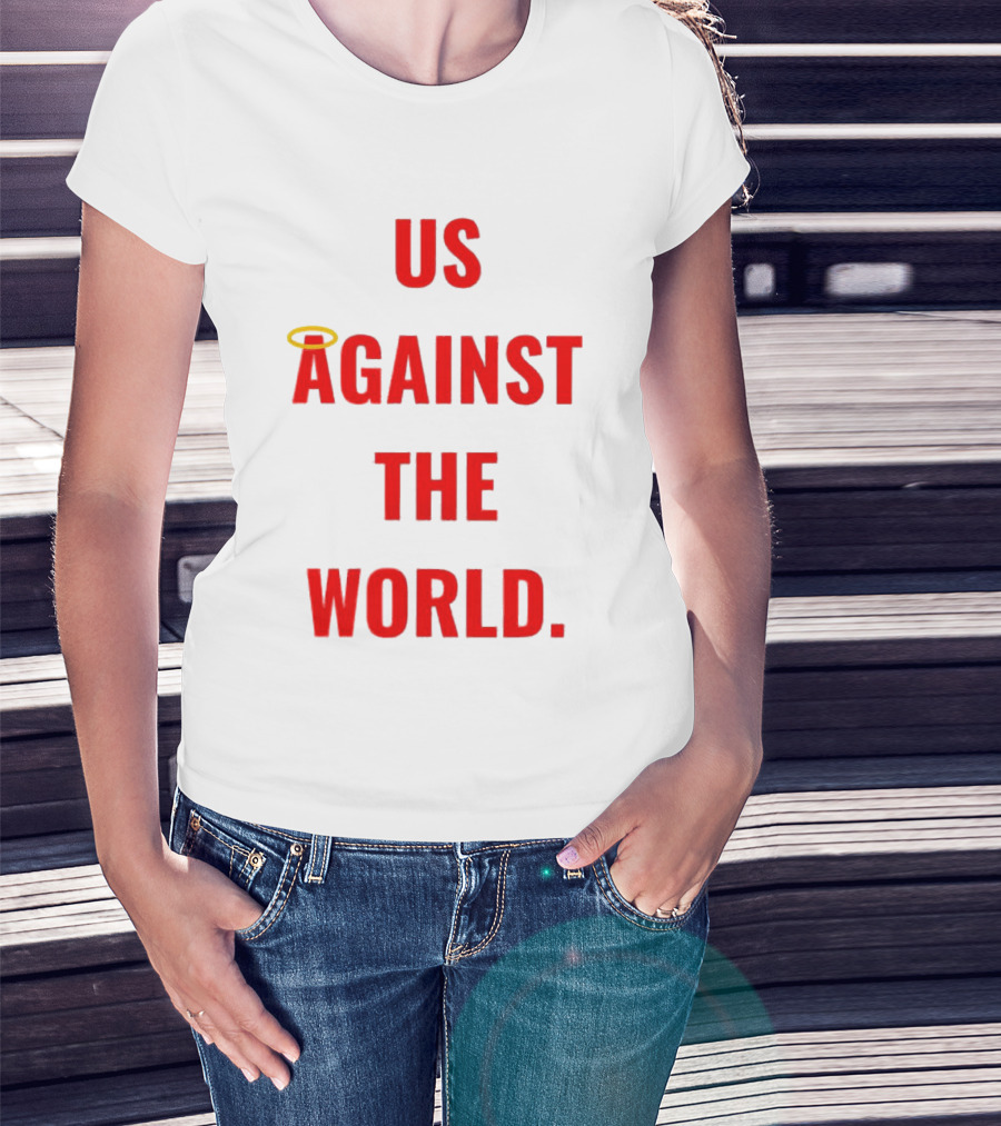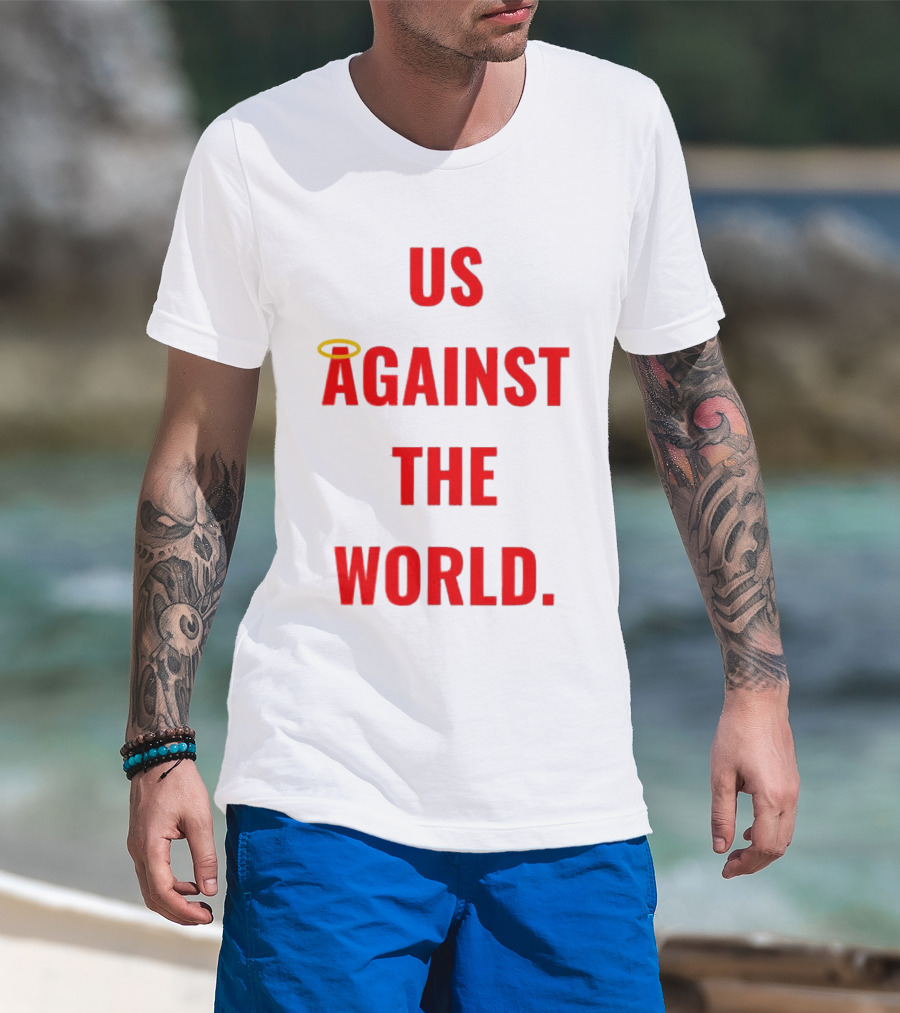 The Us Against The World Angel Halo T-shirt is designed for everyday wear and a consistent fit. Fabric is pre-shrunk ring-spun cotton with durable stitching. See the size chart below for exact measurements.