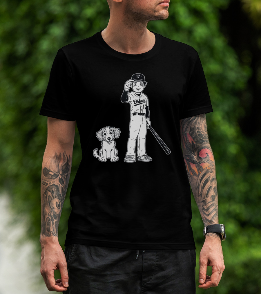 Rotowear Shohei Ohtani 17 Baseball And Dog T-Shirt