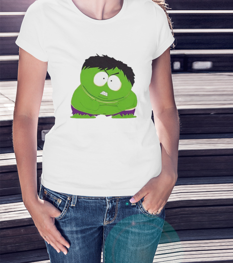 The South Park Hulk Crossover Character Mashup T-shirt is designed for everyday wear and a consistent fit. Fabric is pre-shrunk ring-spun cotton with durable stitching. See the size chart below for exact measurements.