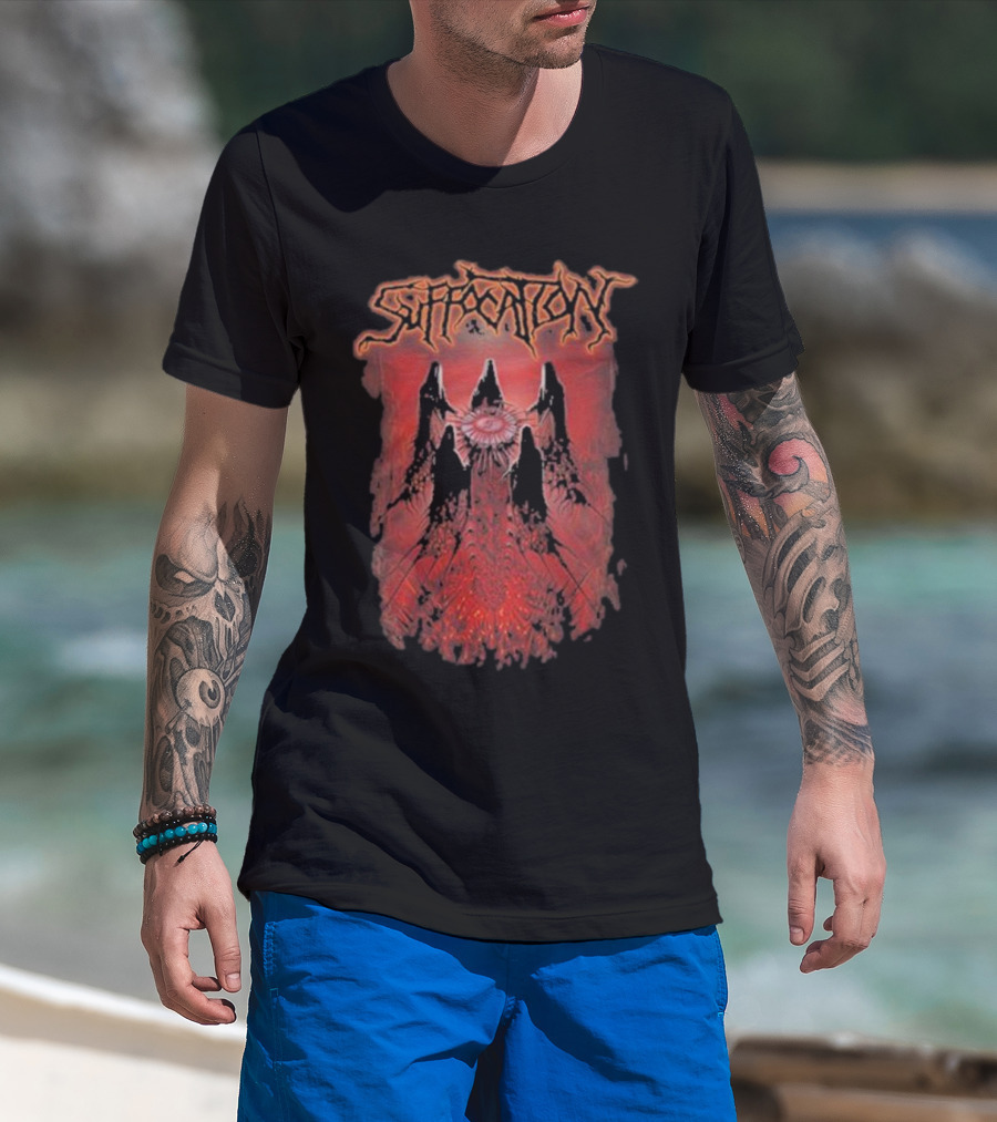 Suffocation Blood Oath Album Art Fiery Red Mountains And Eye T-Shirt
