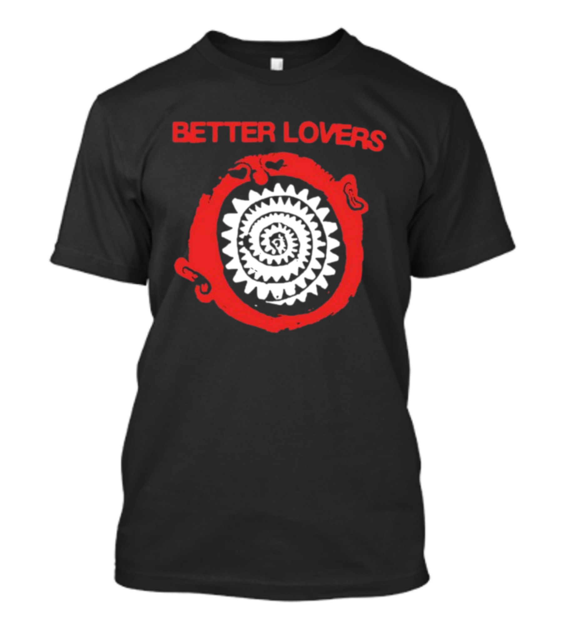 The Better Lovers Band Spiral Teeth T-shirt is designed for everyday wear and a consistent fit. Fabric is pre-shrunk ring-spun cotton with durable stitching. See the size chart below for exact measurements.