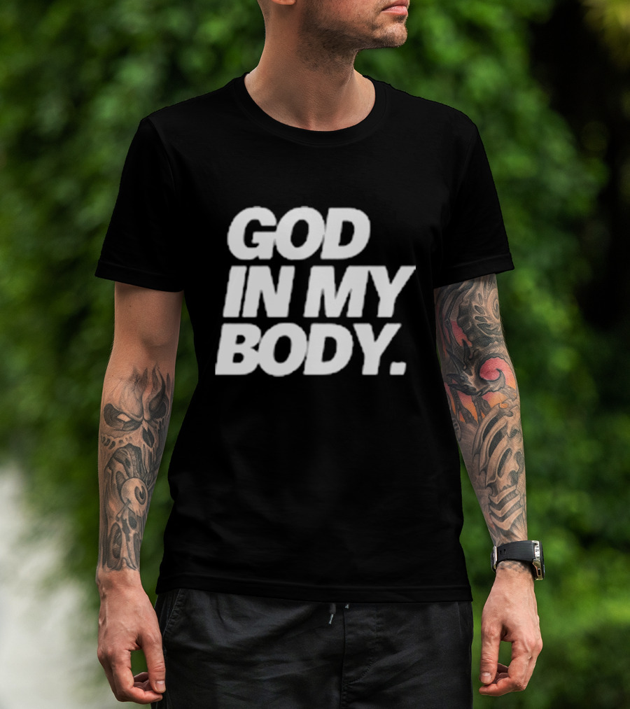 The God in My Body AJ McQueen T-shirt is designed for everyday wear and a consistent fit. Fabric is pre-shrunk ring-spun cotton with durable stitching. See the size chart below for exact measurements.