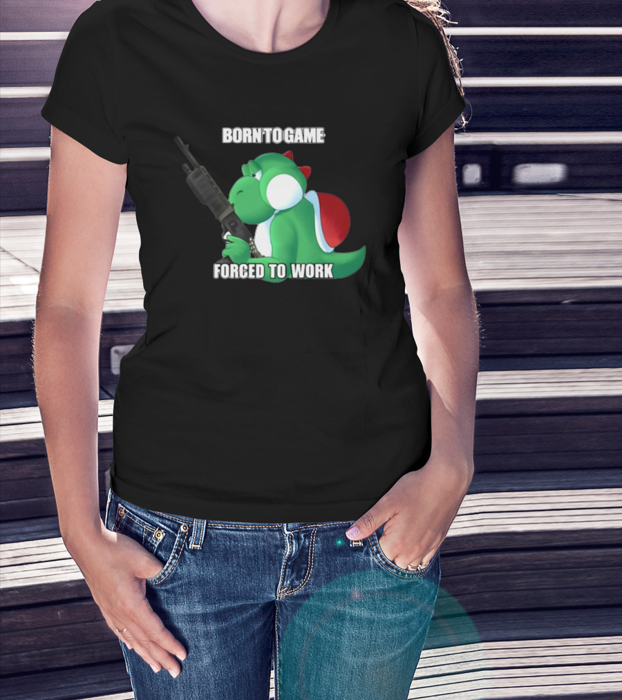 Born To Game Forced To Work Green Dinosaur Headphones Gaming Character T-Shirt