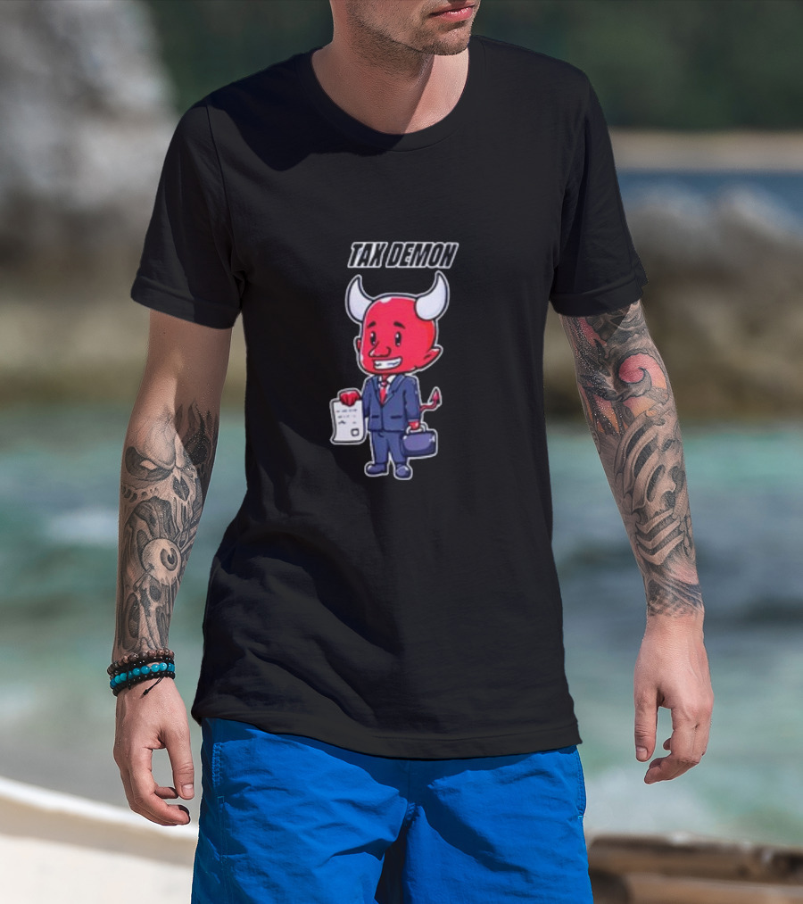 The Cold Ones Tax Demon Suit Holding Document T-shirt is designed for everyday wear and a consistent fit. Fabric is pre-shrunk ring-spun cotton with durable stitching. See the size chart below for exact measurements.