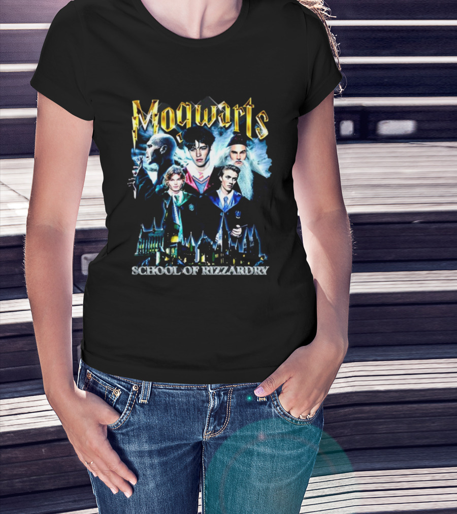 Mogwarts School Of Rizzardry Hogwarts Parody Featuring Iconic Wizard Figures And Castle T-Shirt