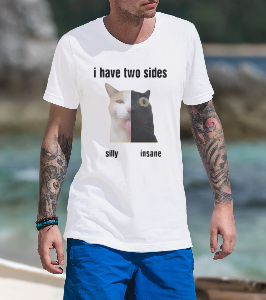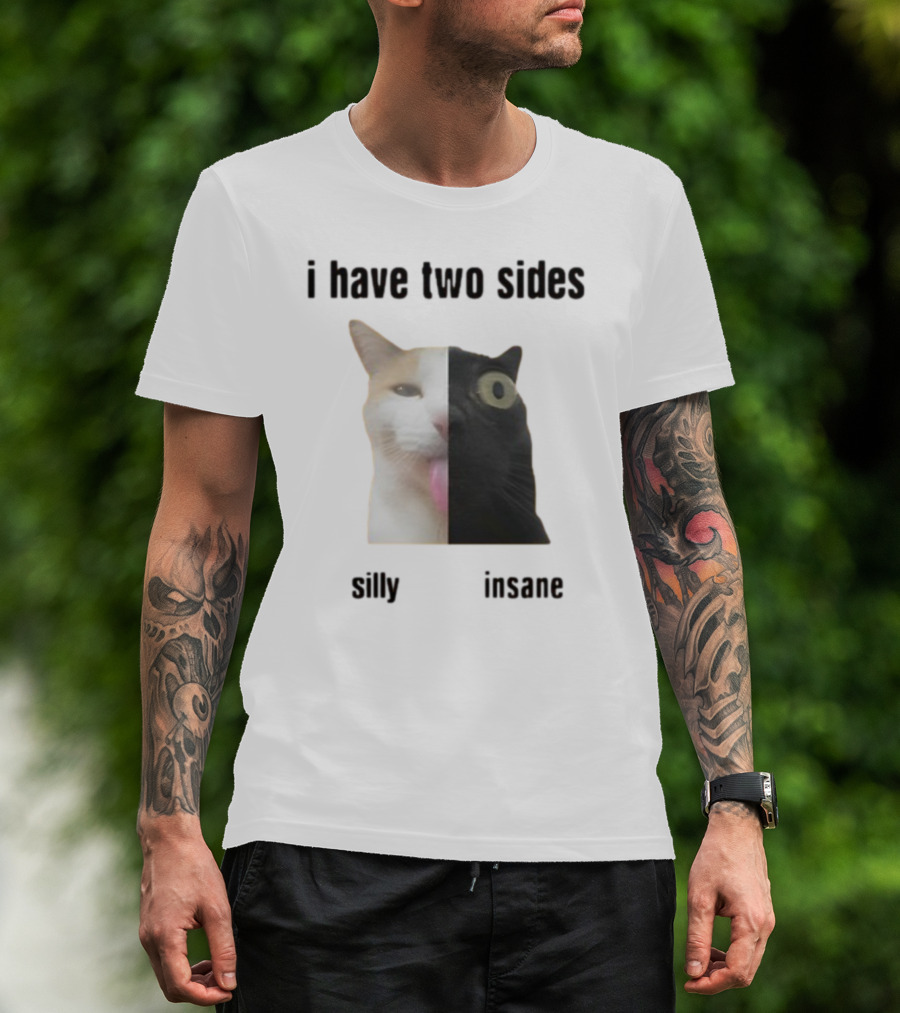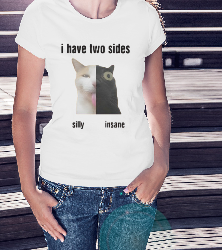 I Have Two Sides Silly Insane Cat Face Split T-Shirt
