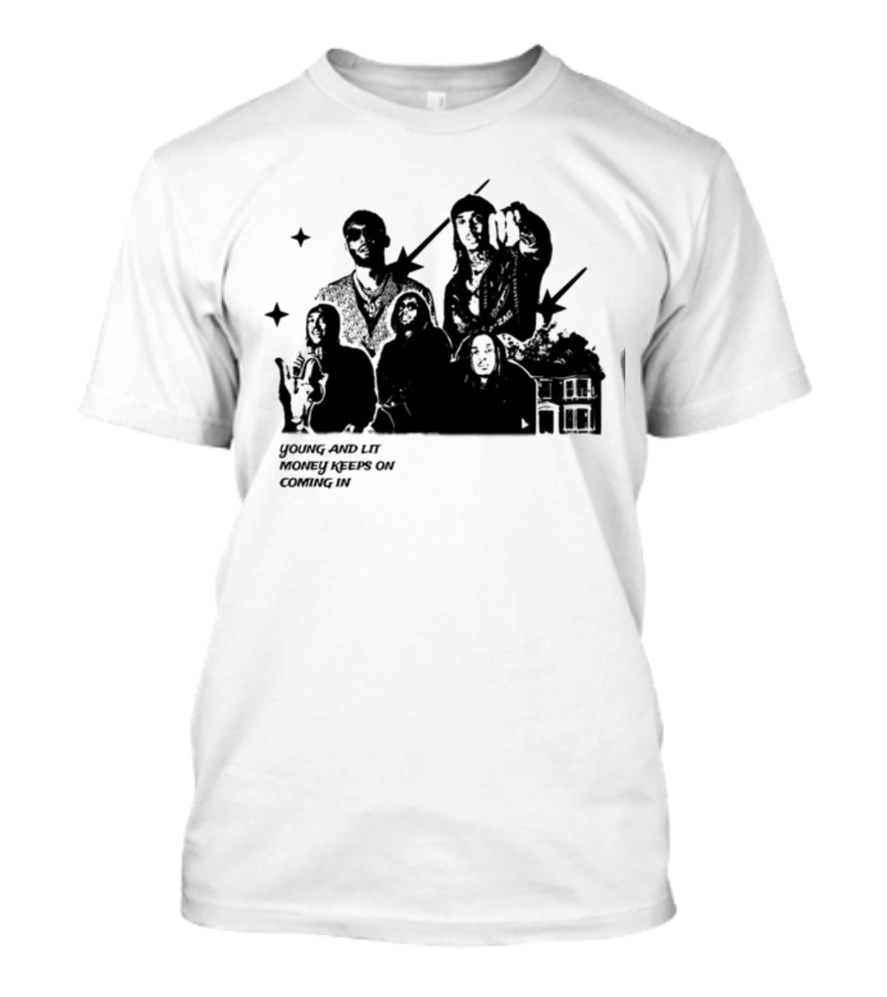 The Maaza Shop Young And Lit Money Keeps On Coming In Iconic Figures and House Scene T-shirt is designed for everyday wear and a consistent fit. Fabric is pre-shrunk ring-spun cotton with durable stitching. See the size chart below for exact measurements.