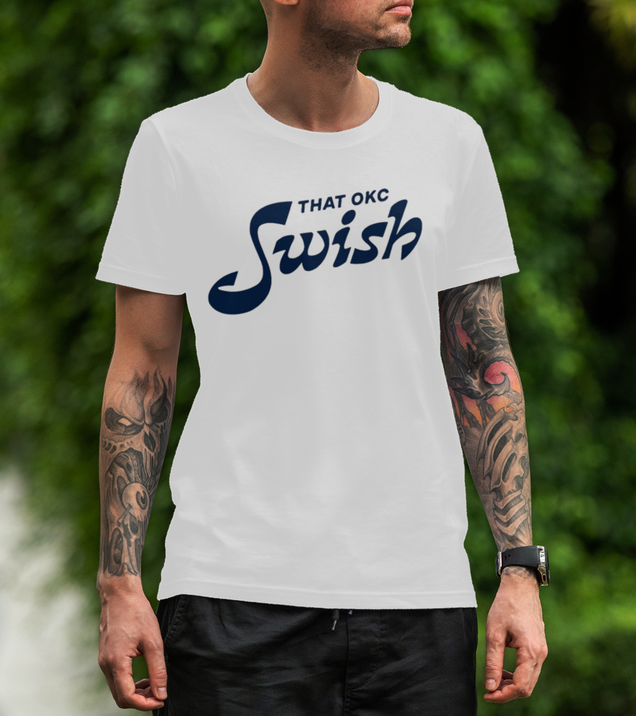 The That OKC Swish Basketball Phrase T-shirt is designed for everyday wear and a consistent fit. Fabric is pre-shrunk ring-spun cotton with durable stitching. See the size chart below for exact measurements.