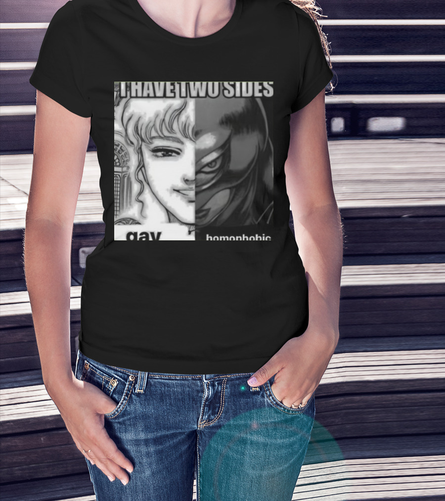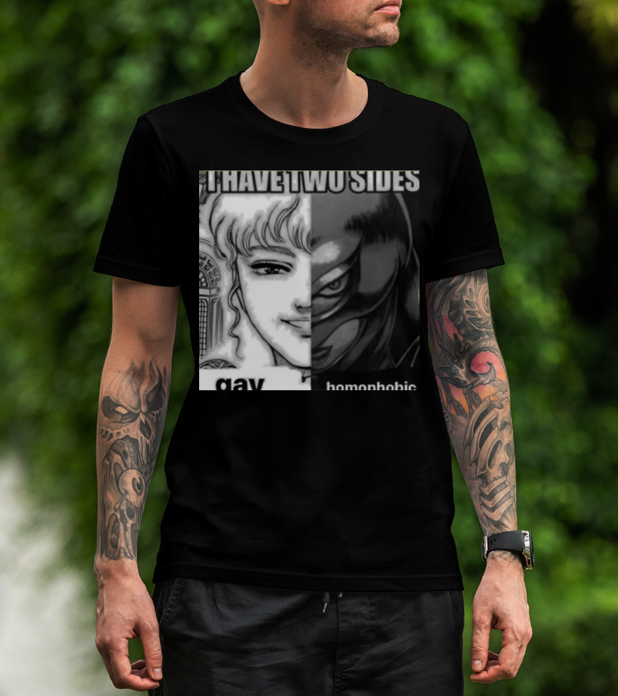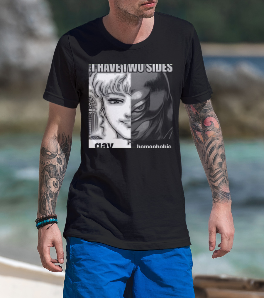 I Have Two Sides Gay Homophobic Manga Character Split Face T-Shirt